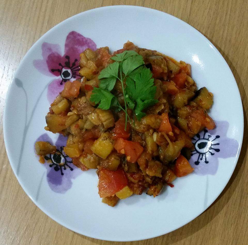 Patlıcanları yıkayıp kurulayın , şeritli soyun ve küp küp doğrayın. ( ne çok büyük, ne çok ufak olsun)